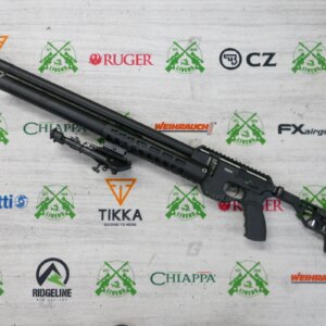 Lightweight and comfortable air rifle KATRAN has an ergonomic right-hand AR15 grip, a foldable stock with adjustable butt-pad and cheek-piece. The aluminium handguard has a 9 slot KeyMod for accessory mounting. Easy-cocking side lever comfortably situated near the trigger with a possibility to change right-left side. The trigger has a 2-stage adjustment.