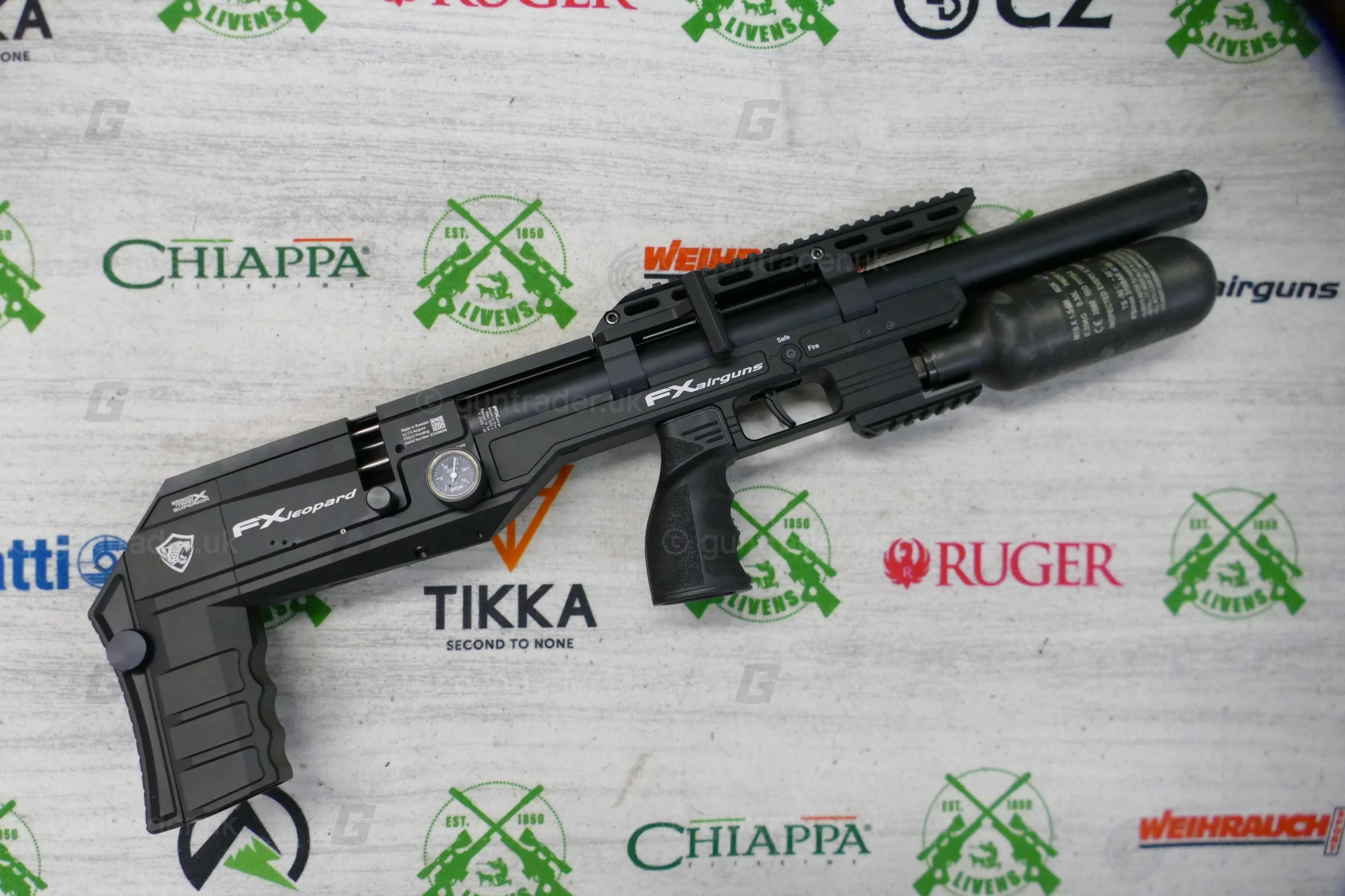 The FX Leopard Bottle Version incorporates a rigid over-the-barrel air system combined with a carbon fiber bottle, maximizing onboard air for an exceptional shot count. providing extended shooting sessions and optimal performance for both low-power and high-power setups. With a 20 MOA incline built directly into the scope rail and a Picatinny accessory rail at the bottom, this version is the perfect companion for both long-range and benchrest shooters.