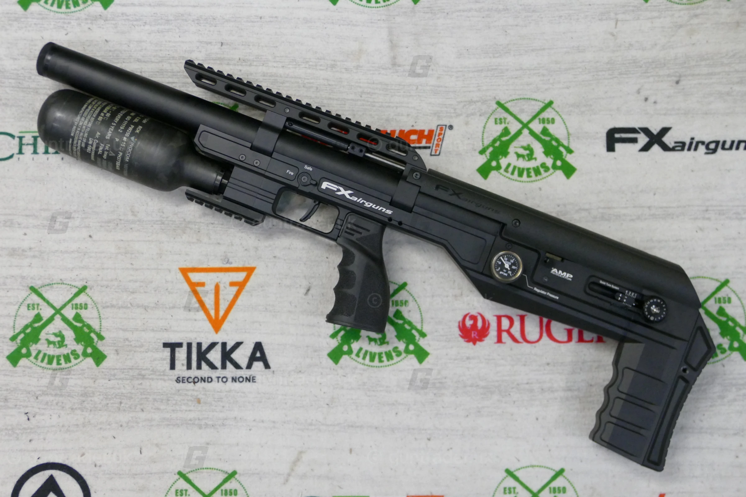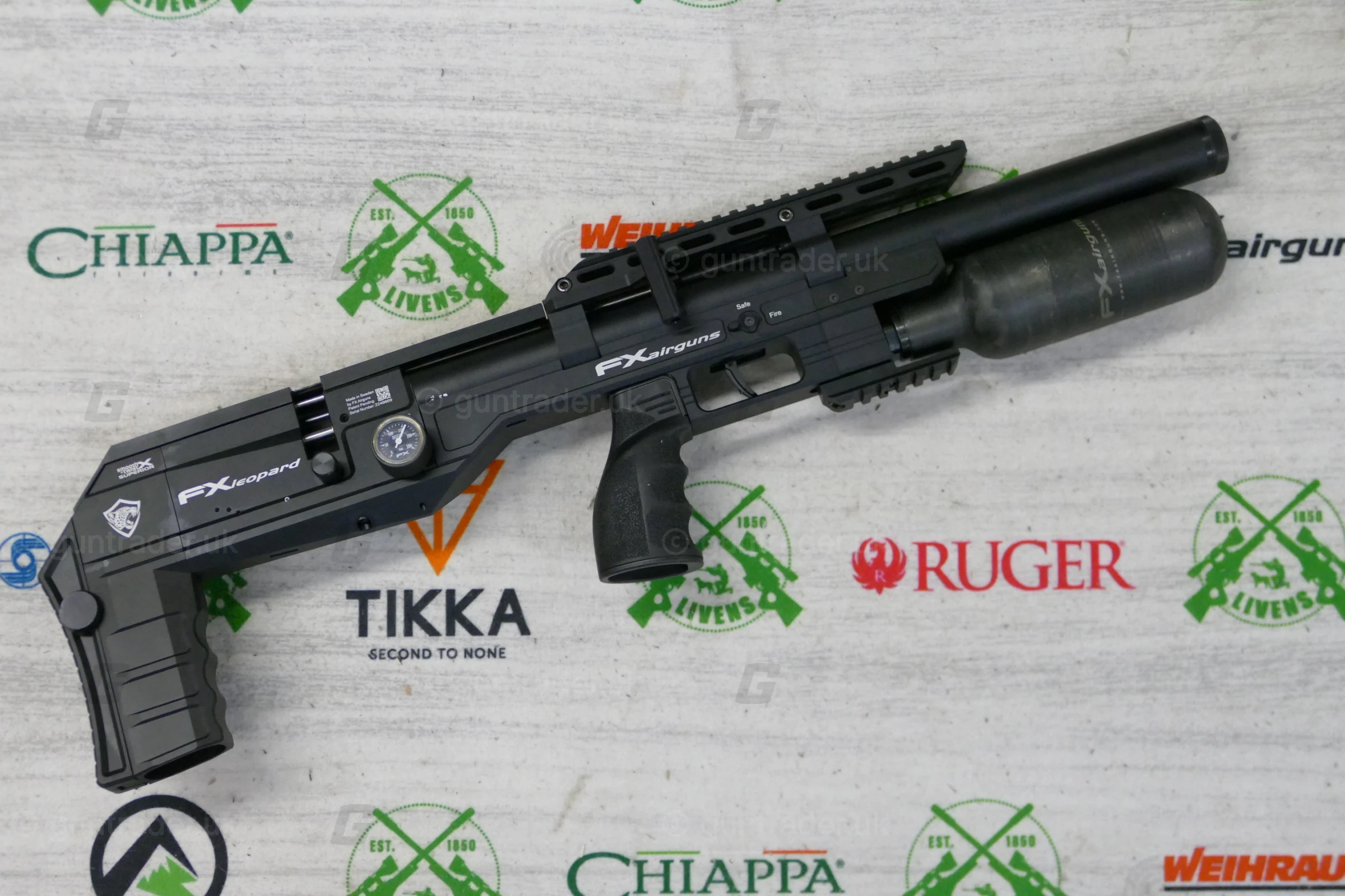 The FX Leopard Bottle Version incorporates a rigid over-the-barrel air system combined with a carbon fiber bottle, maximizing onboard air for an exceptional shot count. providing extended shooting sessions and optimal performance for both low-power and high-power setups. With a 20 MOA incline built directly into the scope rail and a Picatinny accessory rail at the bottom, this version is the perfect companion for both long-range and benchrest shooters.