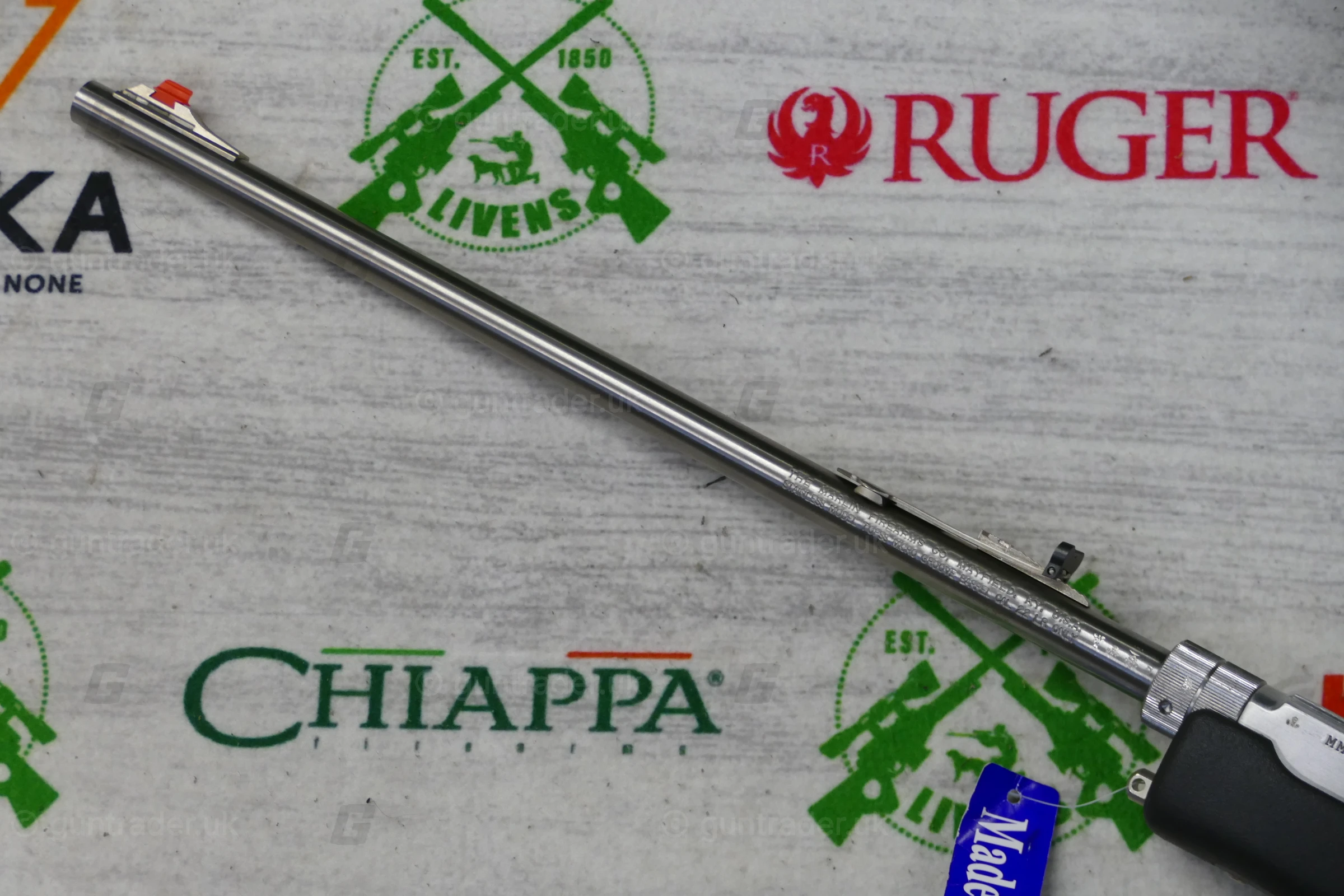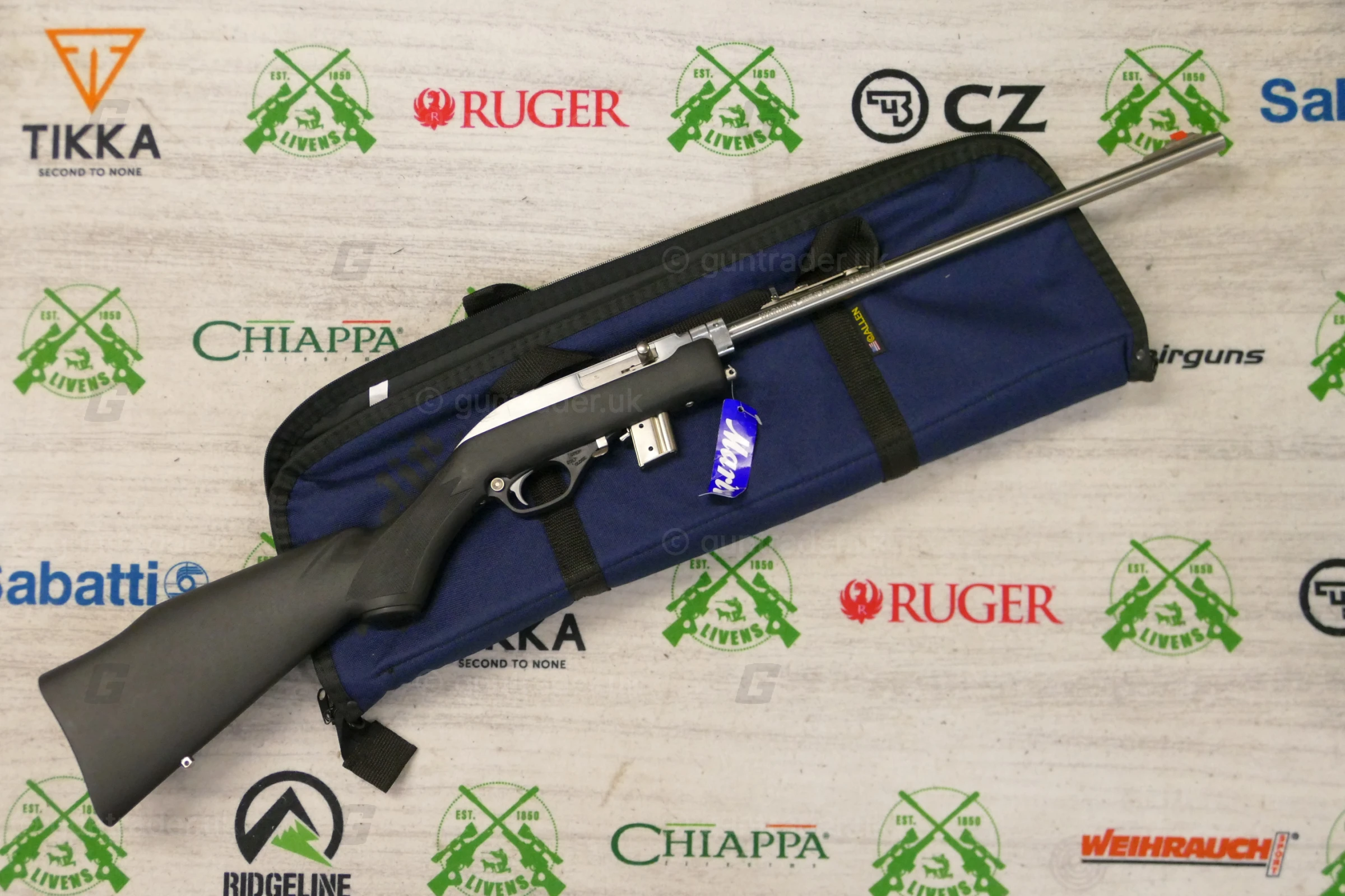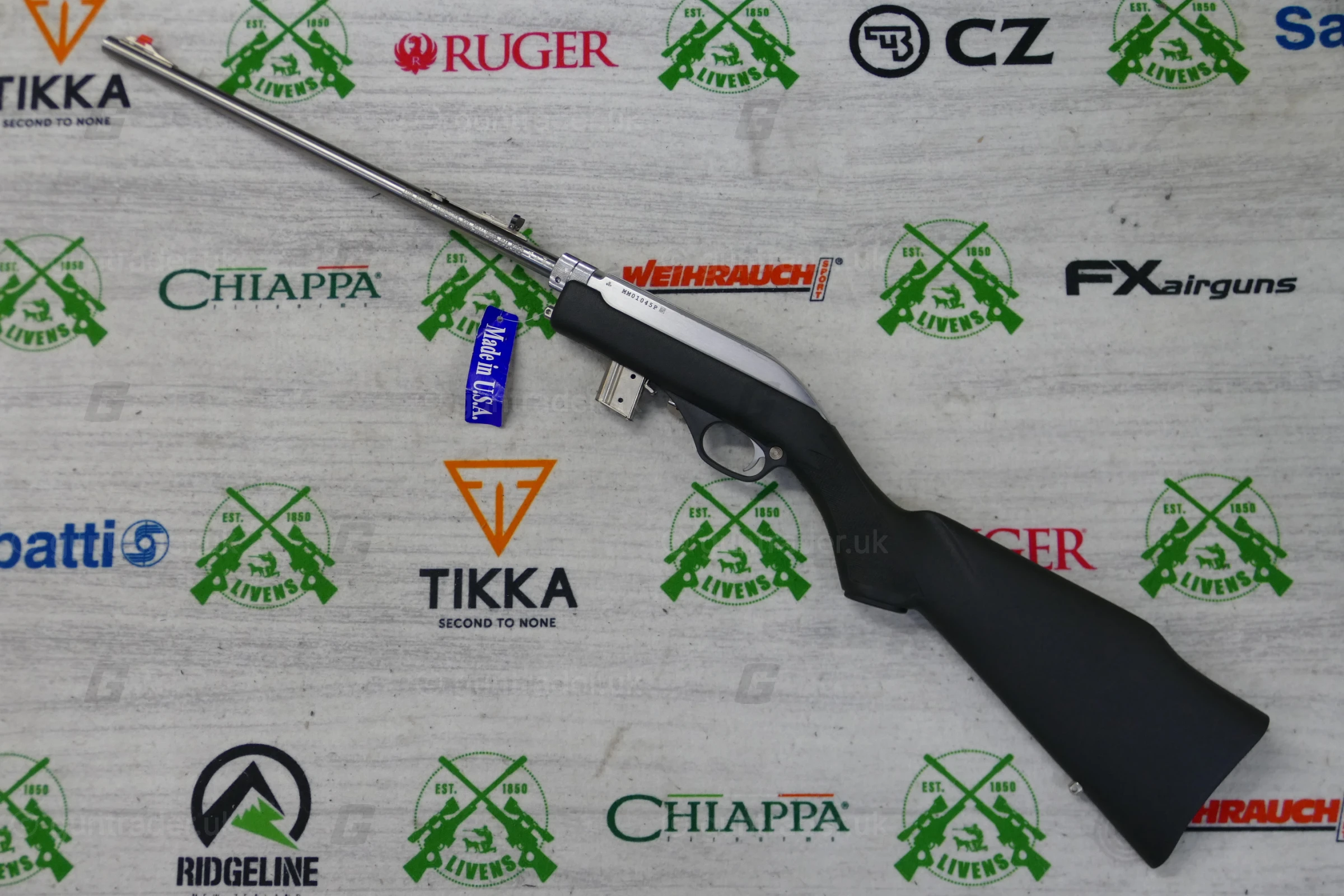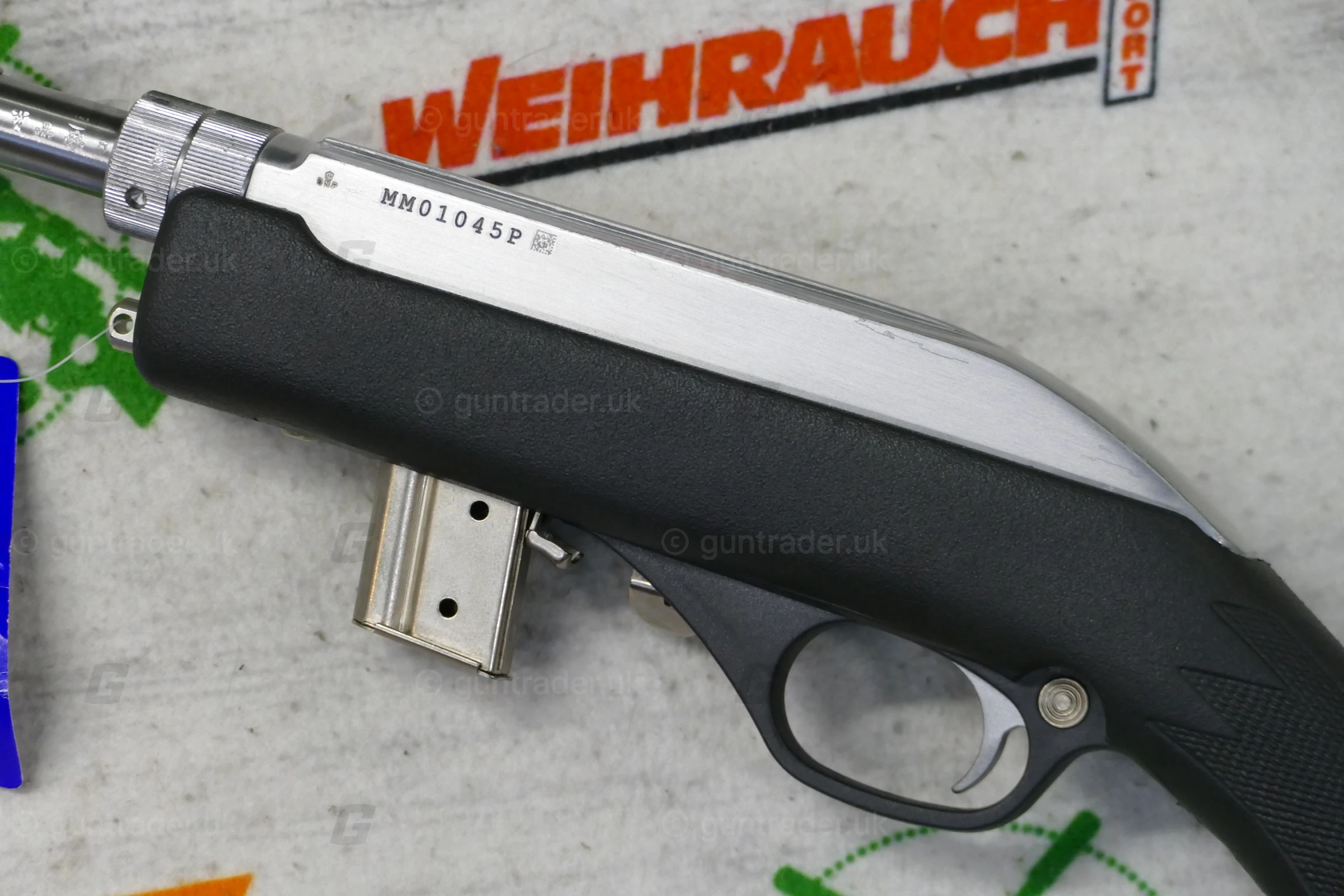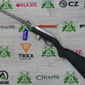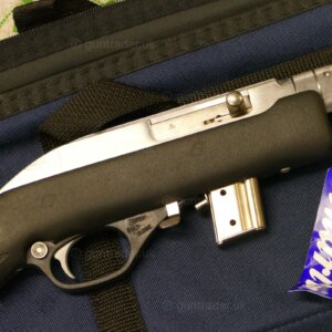 The Marlin Model 70P, also known as the Marlin Papoose, is a .22 Long Rifle semi-automatic rifle manufactured by Marlin Firearms. The rifle is notable for its portability; it is less than 21 inches (530 mm) in length when disassembled and weighs 3.25 pounds. Disassembly requires loosening a barrel retention nut by hand or with a supplied tool. It is designed as a hiker and camper utility rifle, and appeals to the same market as the AR-7. The Model 70P is based on the earlier Marlin Model 70 (currently listed as Model 795) that has a fixed barrel and conventional stock. Its semi-automatic action originated with the Marlin Model 60. The Marlin Model 70PSS variant has a synthetic stock and stainless steel barrel.