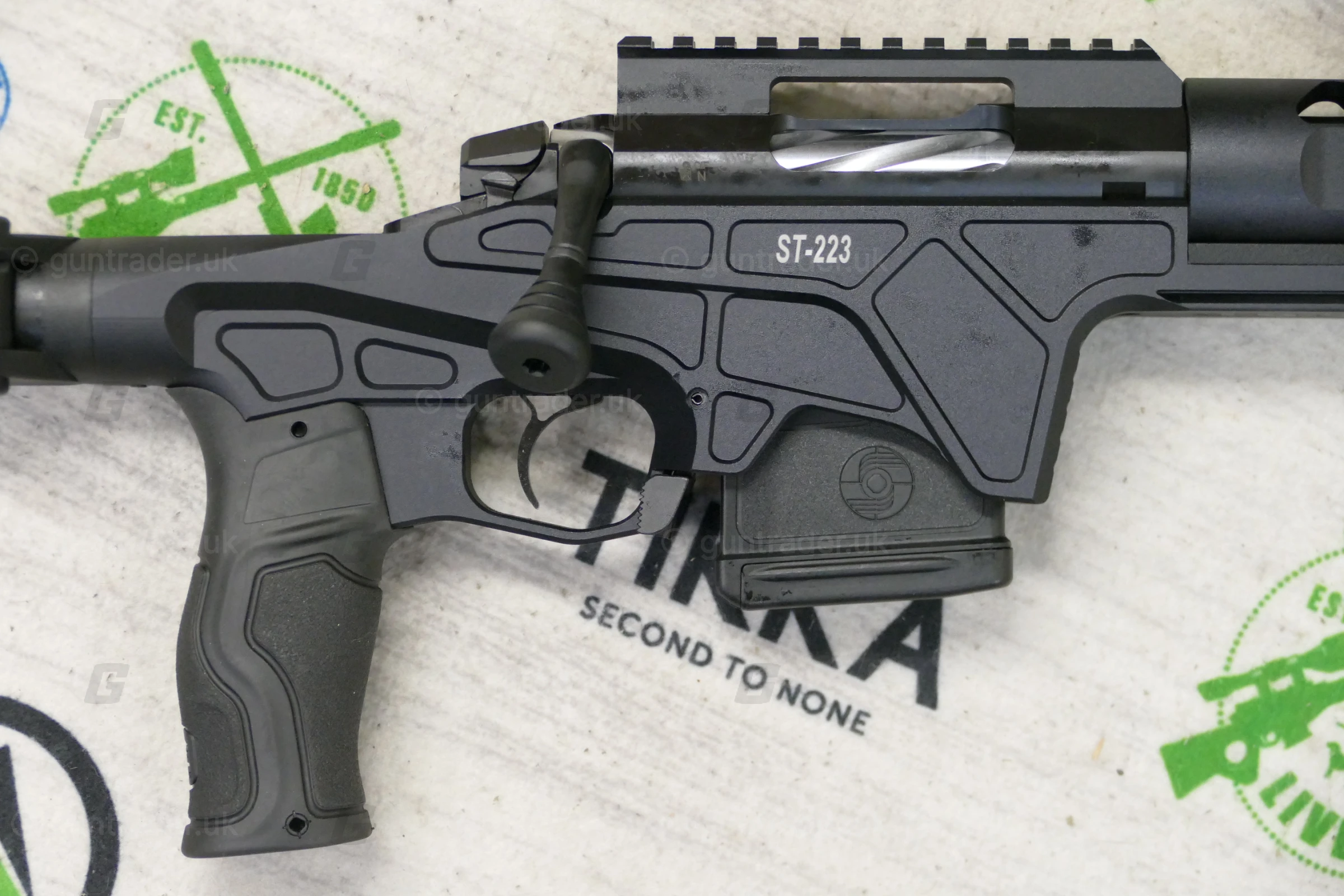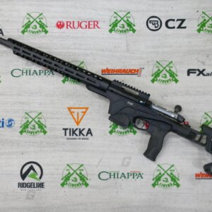 The main feature of the new Sabatti ST-223 is the in 7075 aluminum alloy chassis, completely redesigned; compared to the chassis of the Sabatti STR Sport and ST-18 models, the ST-223 rifle chassis design is lighter. The rifle comes standard with an AR-15-derived barrel handguard with M-LOK slots but is compatible with the two Sabatti forearms of the STR Sport model, namely the basic one with M-LOK slot and ARCA-Swiss rail, or the F-Class shooting forearm with Anschutz rail.