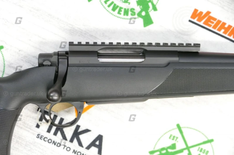 Older model with separate picatinny rail and double lug bolt.