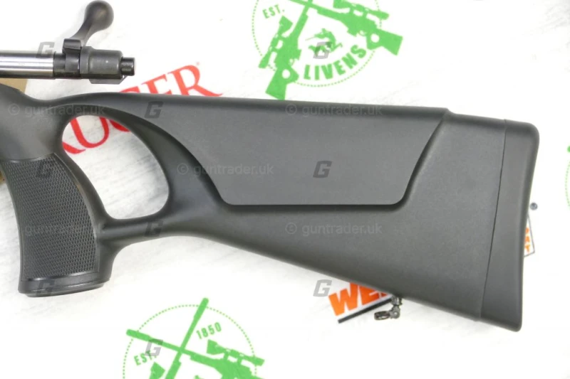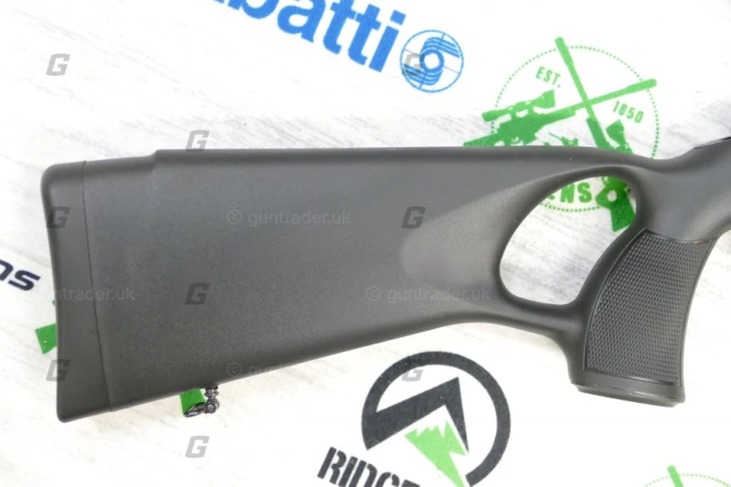The Sabatti Rover Thumbhole rifle comes with a sturdy black polymer stock that has an almost vertical anatomic thumbhole grip which combines ruggedness and lightness with improved ergonomics and it results in a sighting accuracy and speed of tilting, unknown to traditional stocks. The stock also includes a soft recoil pad made of special closed-cell rubber which helps tame the heavier calibers kick.