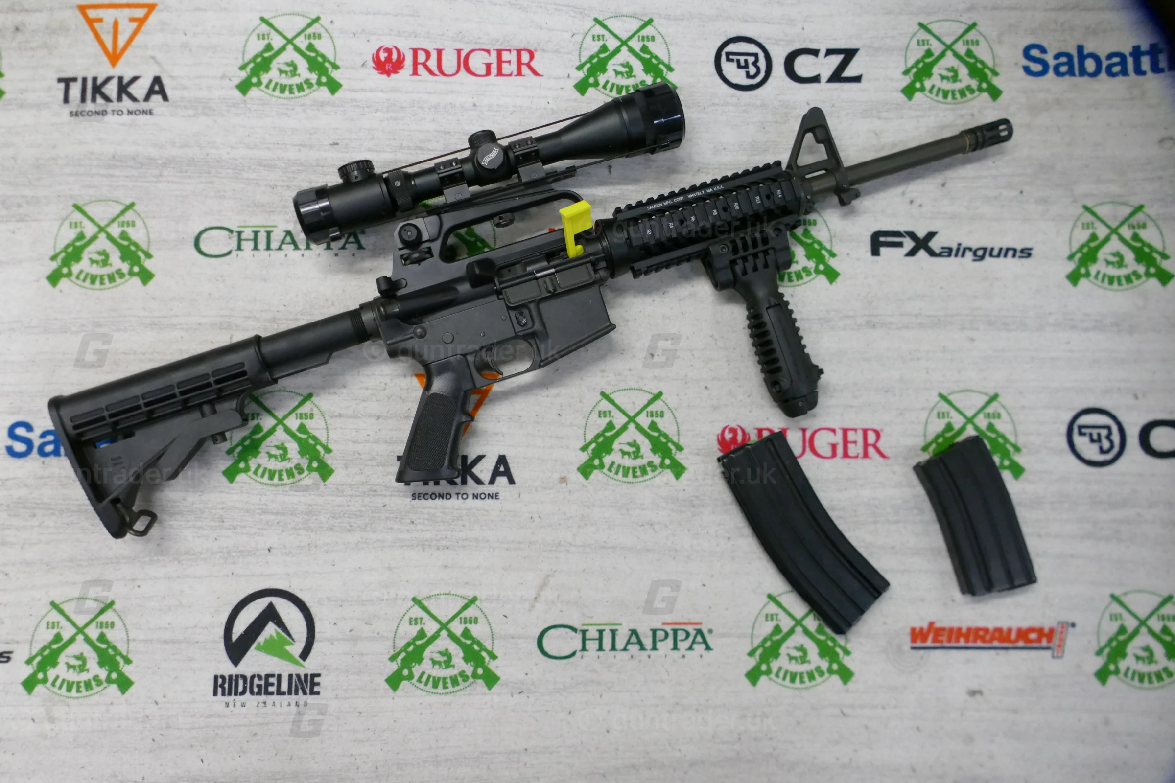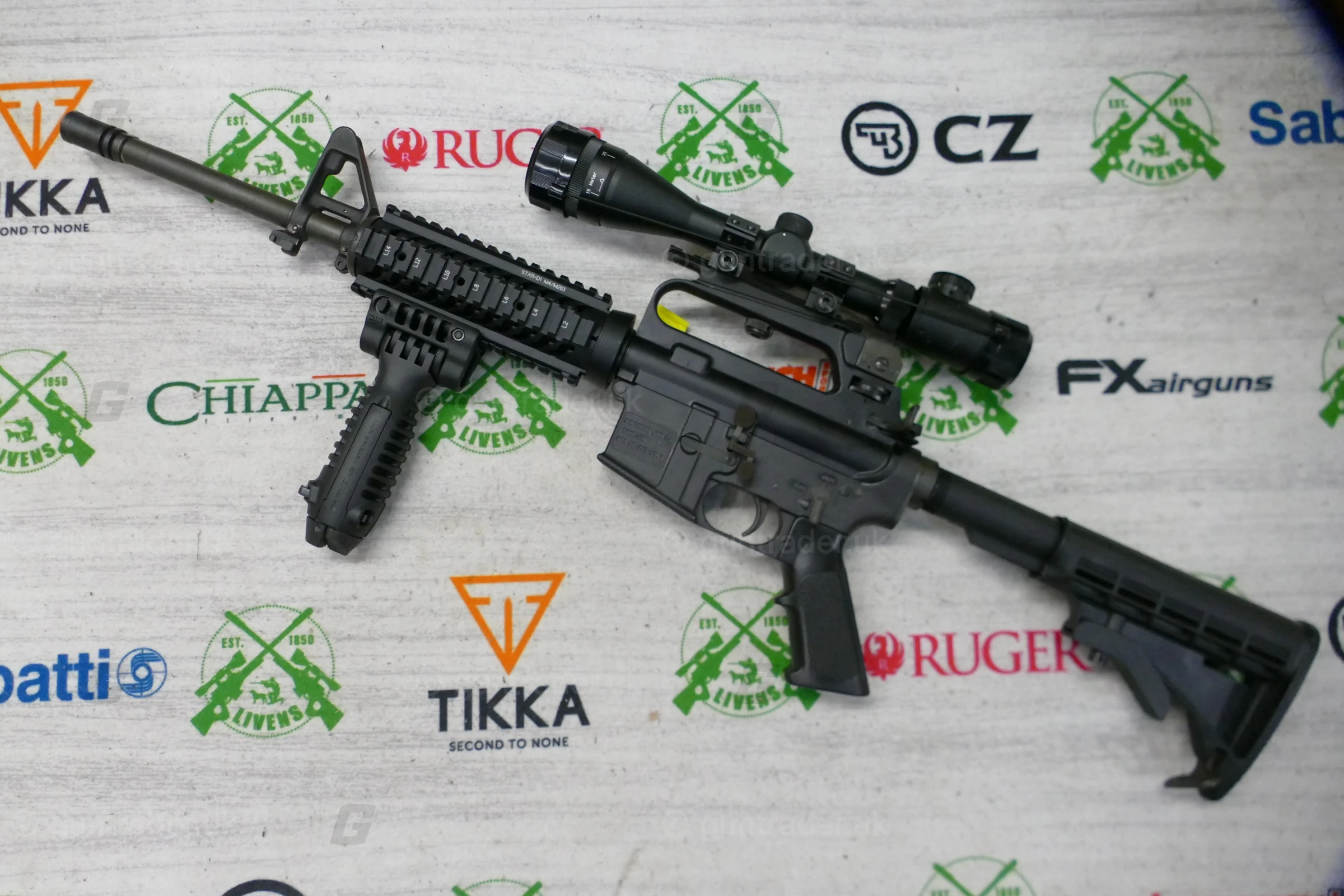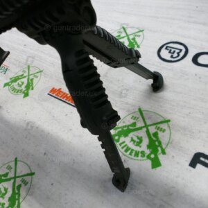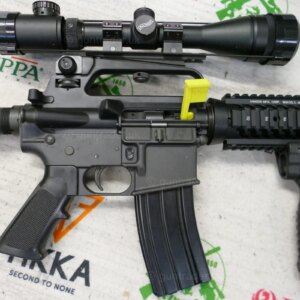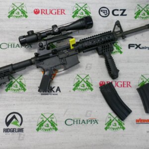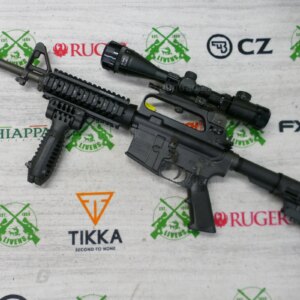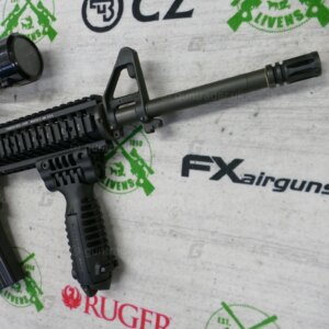 The rifle has an upgraded quadrail foreend and has a buffer tube on the rear which allows you to have an array of different stock options.