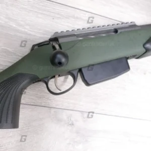 The heavy varmint barrel has Tungsten Cerakote coating, stock is upgraded to Roughtech material and two-stage trigger is default for this rifle.