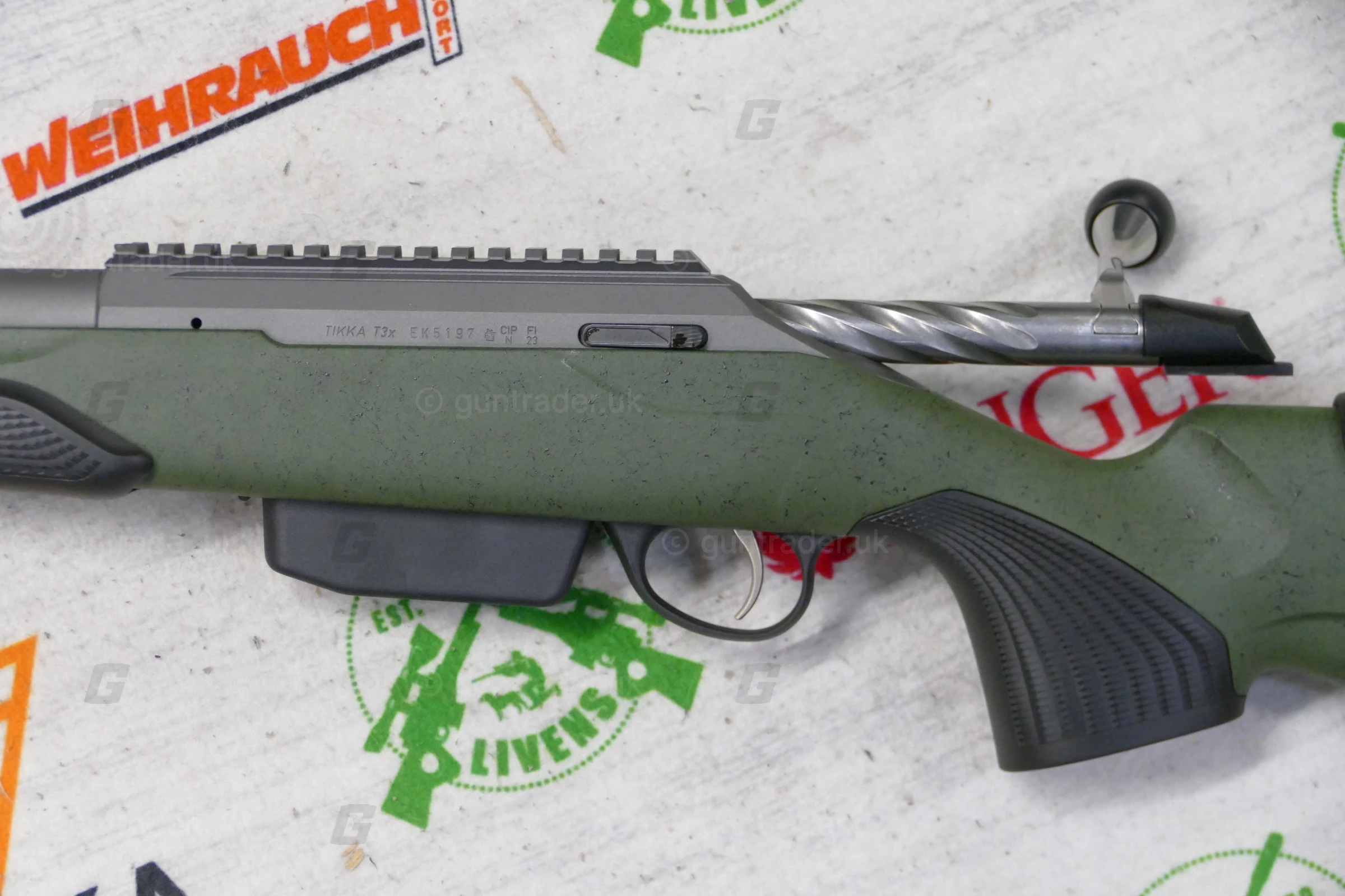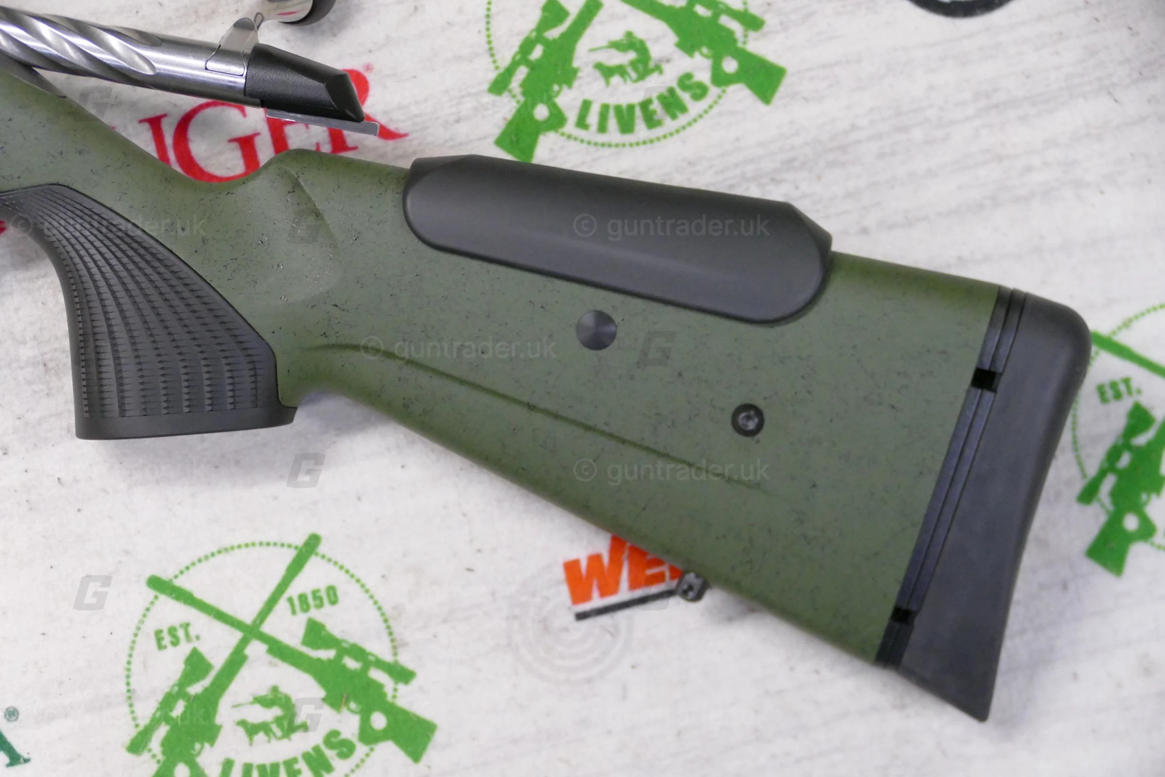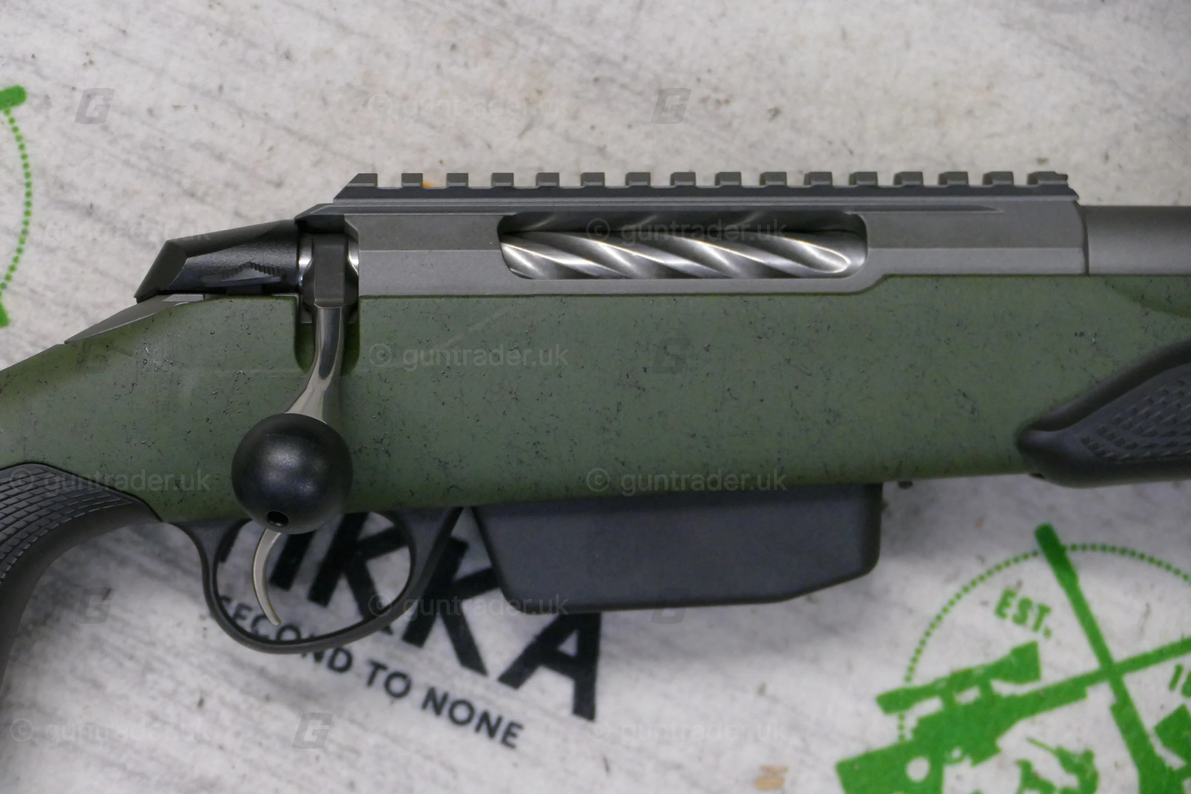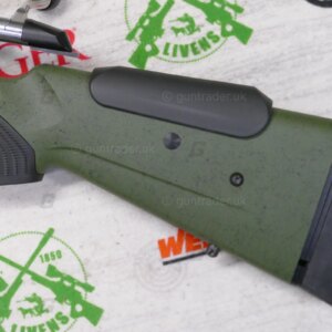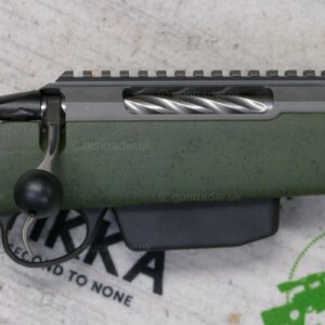 The heavy varmint barrel has Tungsten Cerakote coating, stock is upgraded to Roughtech material and two-stage trigger is default for this rifle.